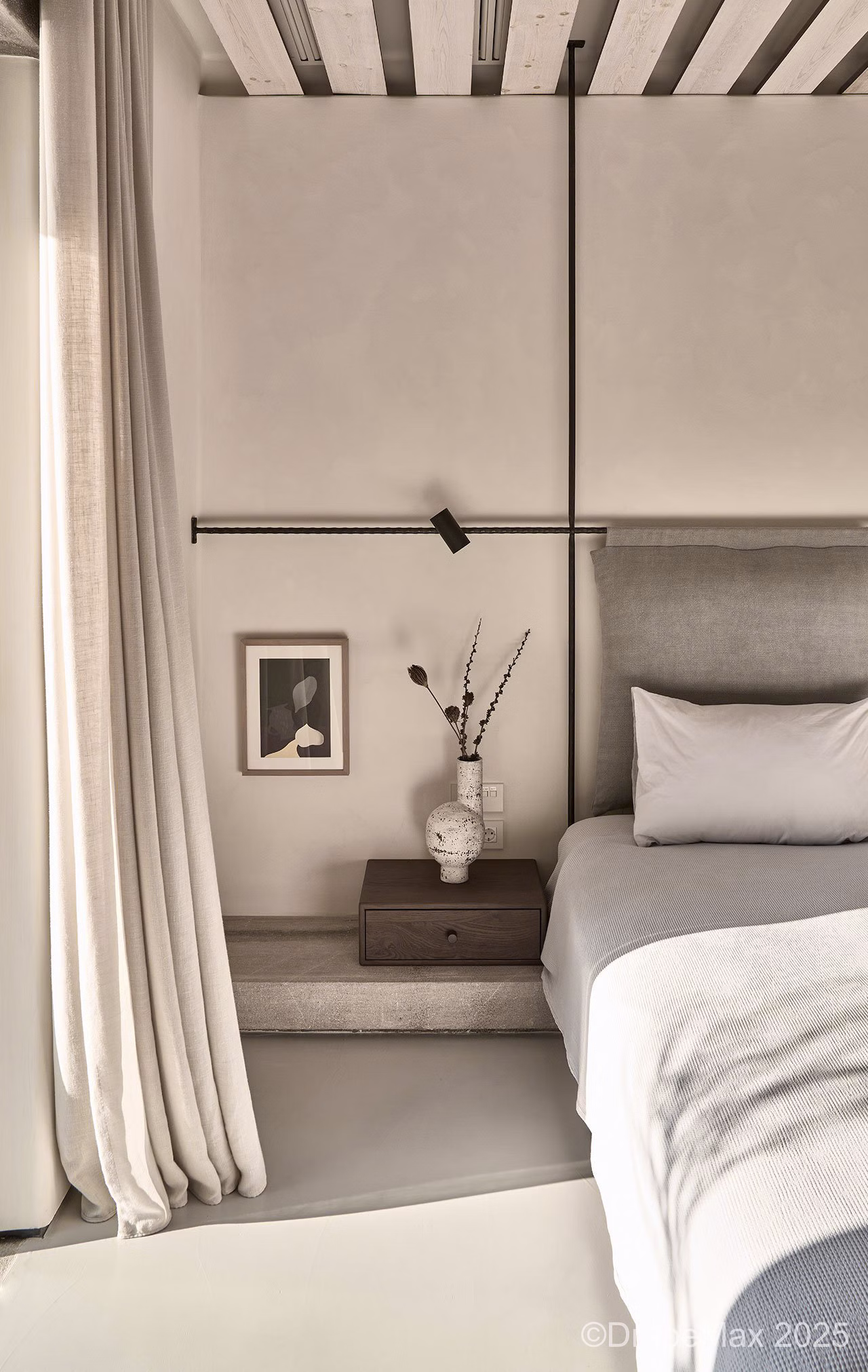 This header style traverses the track or hardware frictionlessly, creating a floating aesthetic.